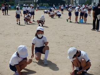 9月14日(水)2限目に、3・4年生が運動場でソーランの練習をしていました。この日が初めての運動場練習でしたが、隊形移動の確認をしながら、全員はだしで一生懸命に取り組んでいました。本番の力強い演技を楽しみにしています!