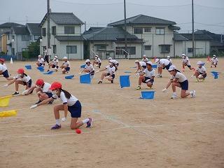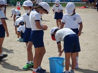 練習最後に、当日安全に実施できるよう、みんなで石拾いをして終わりました。どの子も疲れを見せずに、小さな石もたくさん拾っていました。