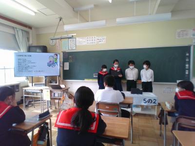 5年生の総合「自分たちにできることを考えよう」では、妊婦や高齢者・目や耳の不自由な人・外国の人など自分で選択したテーマについて調べ、どんな人にとっても住みやすい津幡町にするためには、自分たちで何ができるかを考える学習を行ってきました。そして、5年2組では、11月11日(金)14日(月)の2日間に渡って調べ学習の成果を発表しました。どの班もスライドを使って分かりやすくまとめ、子ども達の優しさが伝わる、すてきな発表でした。