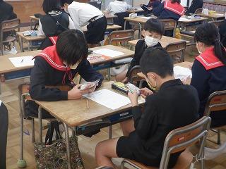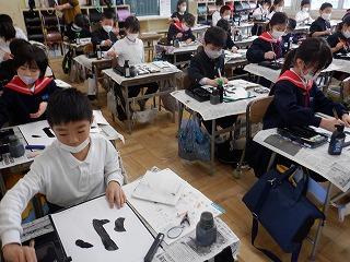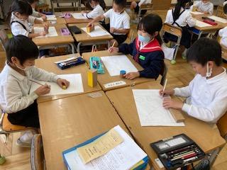 12月1日(木)3年1組の子ども達が、毛筆で「小」の字を練習していました。点とはねの穂先の通り道や筆圧について考えながら、集中して書いていました。3年生から始めた毛筆ですが、筆を持つことにも慣れてきたようでした。