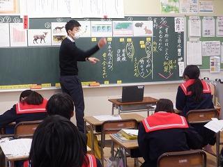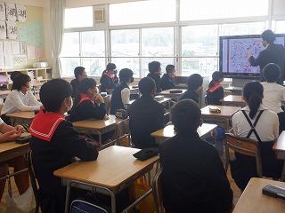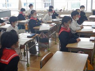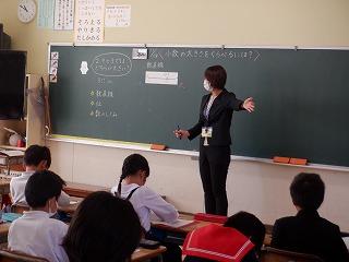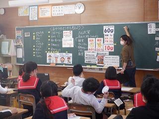 11月25日(金)3年生が、町の栄養教諭の先生を講師にお迎えして、噛むことをよさについて学びました。子ども達は、よく噛むことで唾液が分泌され、消化を助けたり虫歯予防になったり頭がよくなったりすることを知り、自分の生活に生かしたいと考えていました。