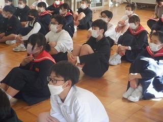 子ども達は、人権についての話を人権擁護委員からお聞きした後、「悩まずアタック 脱・いじめスパイラル」のビデオを視聴し、自分の命・友達の命を大事にすることについて真剣な表情で考えていました。