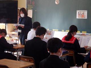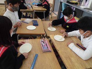11月22日(火)町の栄養教諭の先生から、2年生は食事のマナーについて学びました。みんなで食事をするときにはマナーを守ることが大事だということに気付き、食事の時の姿勢やお茶碗の正しい持ち方等を教えてもらいました。