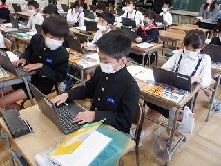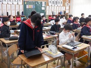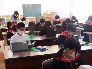 11月14日(月)県教員総合研修センターの指導主事をお迎えして、4年1組で理科の研究授業を行いました。子ども達は、空気の温度と体積の関係について調べる実験結果をもとに、自分の考えをクロームブックを使って入力し、交流しながら考えを深めていました。