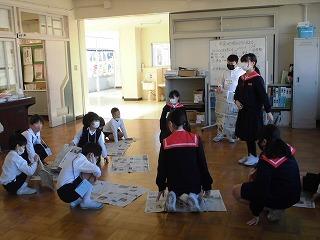 11月16日(水)津幡町観光ボランティアつばたふるさと探偵団の方々に来ていただき、3年生の津幡かるた教室が行われました。津幡かるたの札は、津幡町の名所や名産・歴史の話をもとに作られているので、子ども達は、1・2学期に学んだ津幡町の特産品や町の伝統・文化のことを思い出しながら、楽しく話を聞いたり、かるた競技に取り組んだりしていました。