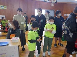 11月17日(木)1年生が、生活科の時間に秋の木の実や木の葉を利用して作成したおもちゃを使って「秋のくりぐりまつり」を行いました。グループごとにお店屋さんを開き、店員さんとして元気な声で呼び込んだり、お客さんになって遊びを楽しんだりしていました。