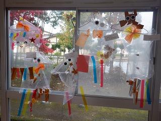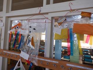 出来上がった作品は、廊下に掲示しました。風に揺らすのが楽しみですね!