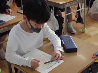 3年1組では、コンパスを使って算数の図形の問題に取り組んでいました。