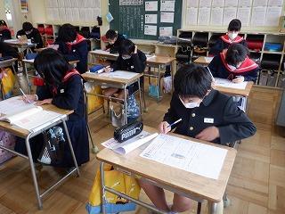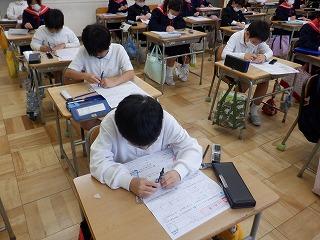 12月に入り、各学年で学期末テストを実施し、2学期につけた力を確かめています。どのクラスの子ども達も、満点目指して真剣な表情で取り組んでいました。