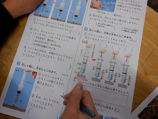 4年1組では、実験したことを思い出しながら、理科の問題に挑戦していました。