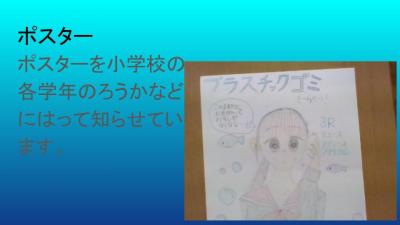 4年生は、総合の「自分たちにできることを考えよう」の学習で、環境問題について調べたことをポスターやパンフレットにして、校内や地域に広める活動を行っています。