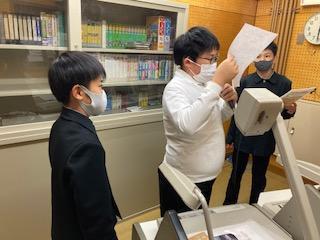 12月5日(月)4年生が、総合で作成した環境を守るためのポスターやリーフレットを地域の方々に発信するため、職員室で協力依頼の電話をかけていました。自分たちの願いをかなえるため、自分たちで直接お願いする活動です。子ども達は、地域の方に協力してもらおうと、自分たちで作成した原稿をもとに、緊張しながら丁寧な言葉で伝えていました。