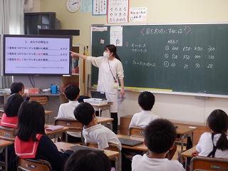 10月7日(金)3年1組の子ども達が、目を大切にするにはどうしたらいいか、養護教諭と一緒に考えていました。明るい部屋と暗い部屋での明るさを、実際に照度計を使って調べ、学習やパソコンを使う時には、光の環境を整えることも大事だということを学んでいました。