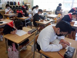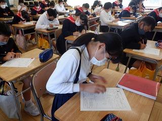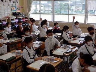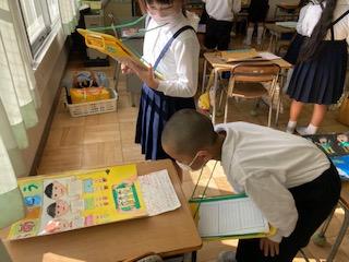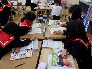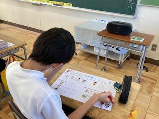 10月13日(木)5年2組で、英語の聴き取りテストをしていました。中・高・大学でもリスニングやヒアリングを重視しているので、小学校の間から英語を聞く力を付けていくことは大事ですね。子ども達は、CDの音声を聴きながら、真剣な表情で問題に取り組んでいました。