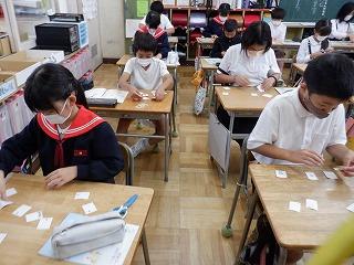 10月7日(金)4年1組の子ども達が、アルファベットカードを使って、アルファベット順に素早く並べる競争をしていました。アルファベットを覚えることが、中学校英語の基礎基本となります。CAN-DOリストのねらいに沿って、しっかりと力を付けてくださいね。