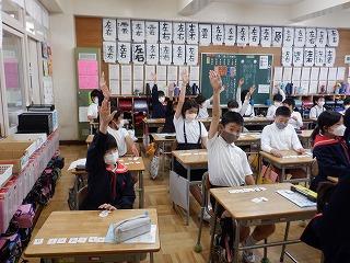 10月13日(木)昼休みに、後期第1回の代表委員会が行われました。新しい委員長や学級代表が集合し、計画委員会から提案された後期児童会目標について話し合いました。参加した代表児童のよい姿から、後期も自分たちで高みをめざし、よい学校にしていこうとする気持ちが伝わってきました。