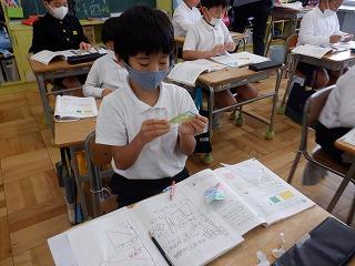 10月11日(火)2年2組の子ども達が、三角定規を使って直角の学習をしていました。身の回りにある直角も、三角定規を使ってたくさん見つけられるといいですね。