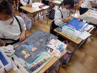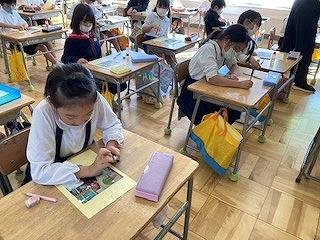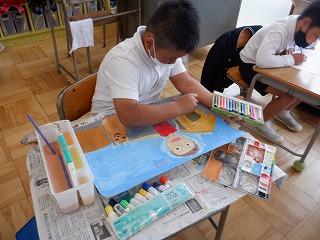 2年生は、楽しかったりドキドキしたりしたことを思い出して描いていました。絵の具を使って、真剣に丁寧に仕上げていました。