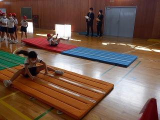 10月11日(火)金沢教育事務所の指導主事をお迎えして、3年1組で体育のマット運動に取り組みました。開脚前転と開脚後転ができるようにと、子ども達は、しっかりとウォーミングアップをしたり、自分に合った練習場所を選んで活動したりしていました。