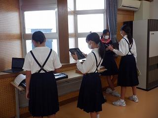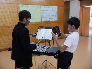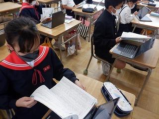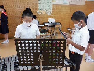 10月11日(火)6年2組の子ども達が、「雨の音」の曲の演奏を録画し、よりよい演奏にしようと取り組んでいました。録音機能を利用して、自分の改善点に気付けるところがクロームブックのよさですね。子ども達は、すっかり使い慣れた様子で、楽しく活動していました。