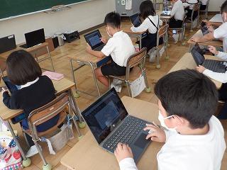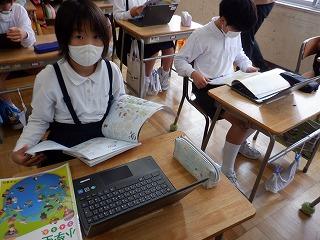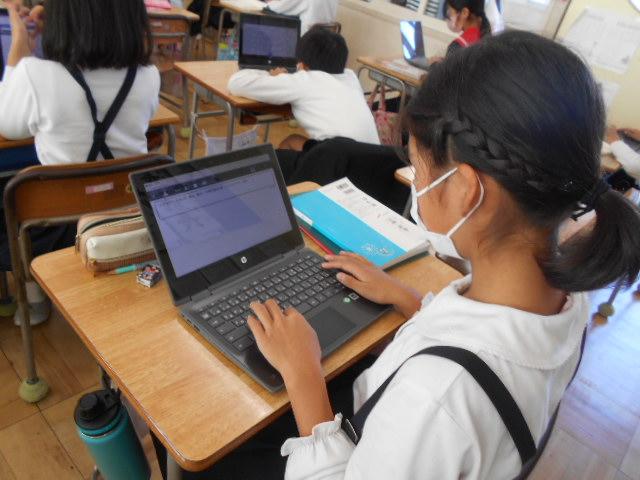 10月11日(火)4年2組の子ども達が、クロームブックで都道府県クイズを作っていました。地図帳を片手に、社会科で学んだ各県の特産品や特徴を基に、真剣な表情で問題を考えていました。どんな問題ができるか、楽しみです!