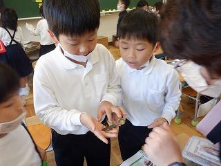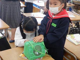 2年生の生活科では、学校の周りにいる生き物を大切に育てながら観察しています。