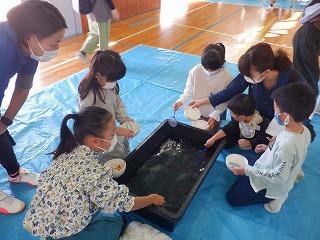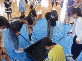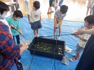 コロナ感染防止対策のため、前半と後半に分かれての体験でしたが、さわがにすくい・海底の宝物つかみ・アカハライモリタッチなど6つのすべてのブースで、子ども達と保護者の皆様の笑顔があふれ、楽しいひと時となりました。