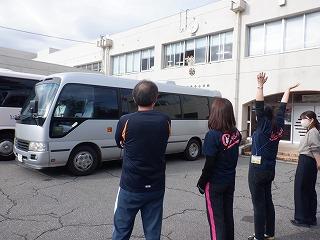 気もちをそろえた後は、バスに乗って笑顔で出発しました。みんなで協力して活動し、楽しい思い出をつくってきてくださいね。
