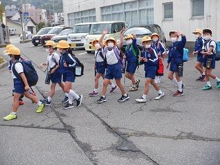 10月18日(火)3・4年生が、遠足であがた公園へ行きました。交通ルールを守って、怪我なく安全にあがた公園までたどり着けるよう、気を付けて歩きました。