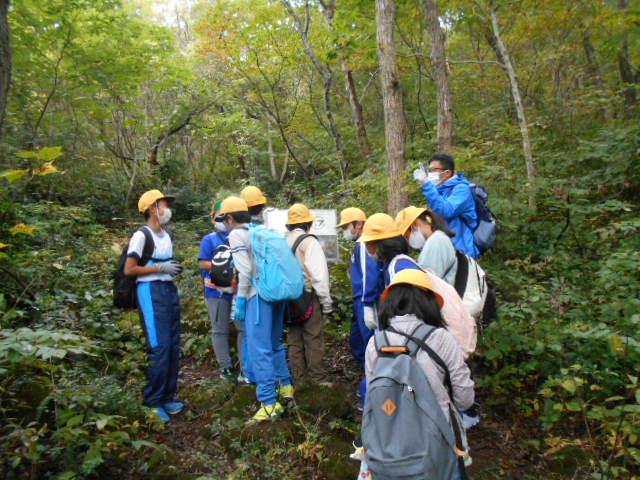 10月18日(火)5年生は、体験学習場所であるキゴ山に到着し、出発式を行いました。実行委員の児童があいさつをし、体験学習がスタートしました。
