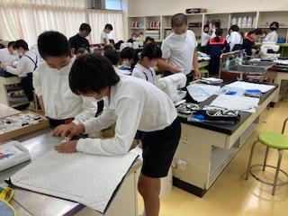 10月18日(火)6年2組の子ども達が、ミシンを使ってナップサック作りをしていました。日ごろ使わないミシンの操作に悪戦苦闘しながらも、困った時にはグループで助け合いながら、楽しそうに作っていました。出来上がるのが、楽しみですね!