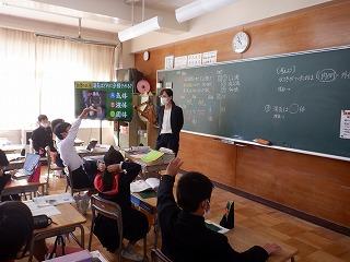 10月11日(火)金沢教育事務所の指導主事をお迎えして、5年2組で音楽の研究授業を行いました。子ども達は、「赤とんぼ」と「この道」の2曲を聴き、クロームブックを使ったり、グループで話し合ったりしながら、それぞれの演奏のよさを学んでいました。