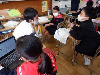 10月19日(水)4年2組の子ども達が、「湯気は気体?液体?固体?」の問題について考えていました。子ども達は、自分の考えを伝え、友達と話し合いながら考えを深めていました。