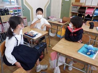 10月7日(金)2年2組の子ども達が、10月末に実施する地区探検でのインタビュー計画に取り組んでいました。シグナスや公民館の秘密を探るにはどんな質問をしたらいいか、グループごとに楽しく相談していました。