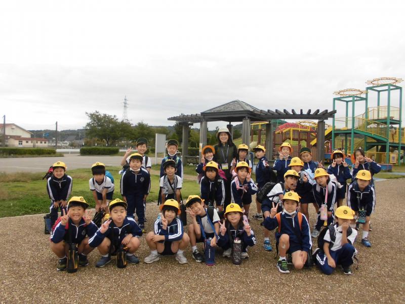 10月18日火曜日、秋の遠足で1・2年生は中条公園に行きました。交通ルールを守って回り道をしながら、中条公園に向かいました。公園では、2年生がリーダーとなって、1年生と仲良く遊ぶ姿がたくさん見られました。後半はあいにくの雨となりましたが、学校に戻り、体育館でおいしいお弁当を食べた後、なかよしグループでドッチビー大会をしました。どの子も、生き生きとした様子で頑張っていました。