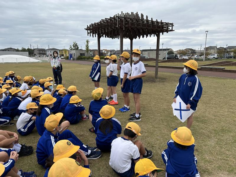 10月18日(火)3・4年生が、あがた公園に遠足に行きました。3年生にとっては、初めての長い距離の遠足です。出発式では、4年生実行委員が中心となって、めあてや歩くときの約束をしっかりと確認していました。4年生がリーダーシップを発揮して、楽しい遠足になると期待できる立派な出発式でした。