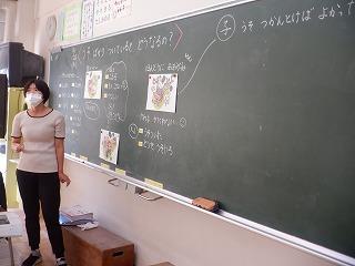 研究授業の後は、指導主事から指導助言をいただきながら、低学年教員みんなで学び合いました。