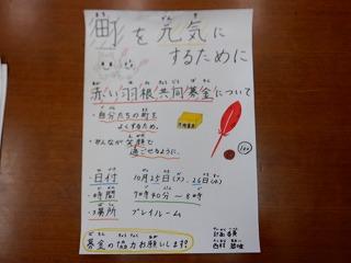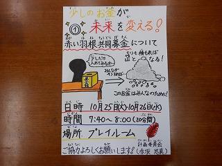 明日10月25日から2日間、計画委員会が赤い羽根共同募金に取り組むため、全校児童に協力を呼び掛けるポスターを作成し、玄関や廊下に掲示しました。
