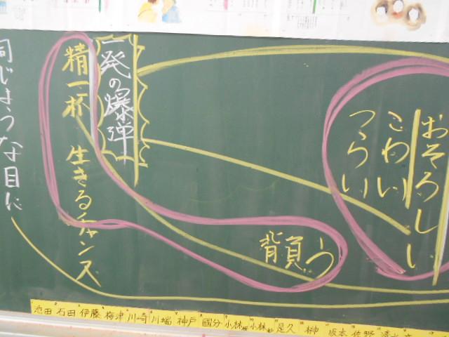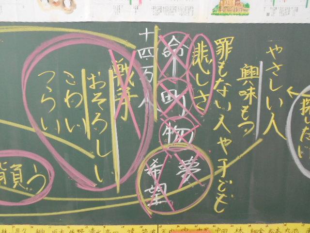 子ども達は、物語の文章から登場人物の心情の変化につながる根拠を見つけ、戦争の恐ろしさや戦争で亡くなった人の分まで精一杯生きようと、1人1人が自分事として考えていました。