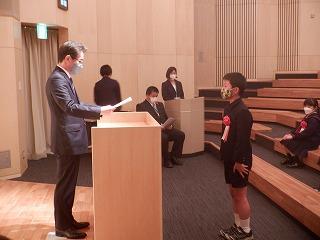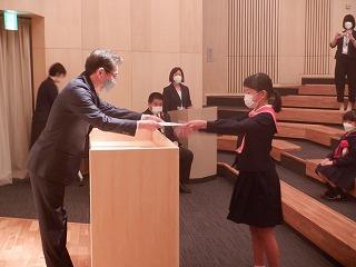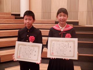 10月22日(土)津幡町文化会館シグナスで、第8回津幡町・図書館を使った調べる学習コンクール表彰式が行われました。応募数316点の中から14名が受賞し、本校からは、最優秀賞と努力賞を受賞した2名の児童が参加しました。表彰式では、2名とも代表児童にふさわしい立派な態度で、町教育長から賞状を受け取っていました。