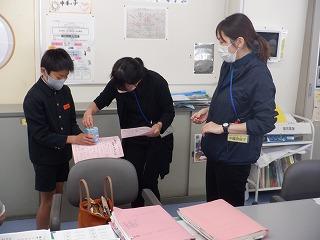 本日24日(月)昼休みに校内放送で全校児童に呼びかけた後、計画委員長と副委員長が作成したチラシを持って職員室にやってきて、早速募金活動に取り組んでいました。