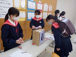 説明の後は、模擬政党から立候補した4名の政策を知り、投票を行いました。どの政策が自分たちの学校生活をよりよくしてくれるか、一人一人考えながら自己決定していました。