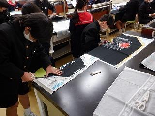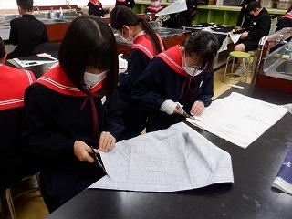 2月1日(水)5年2組の子ども達が、エプロンを作るため、布地を裁断する活動に取り組んでいました。裁ちばさみを初めて使う子もいるようで、大きなはさみで慎重に切っていました。自分だけの素敵なエプロンに仕上がるのが楽しみですね。
