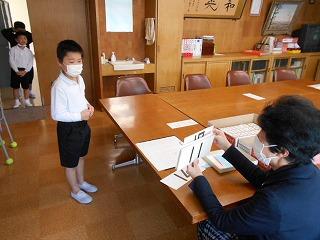 2月1日(水)から、1年生の「たし算校長先生検定」が始まりました。冬休みの間も、一生懸命練習してきたのでしょう。15問のたし算問題に素早く答え、合格証をゲットし笑顔で受け取っていました。