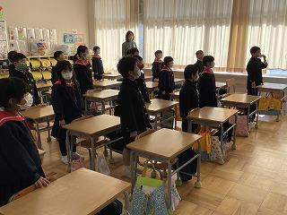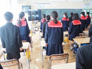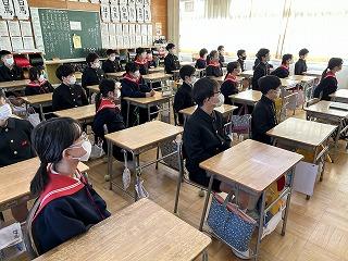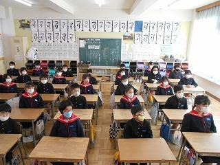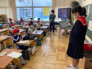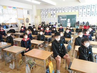 2月1日(水)5限目に、今月もリモートで全校集会を行いました。初めは、6年生の伴奏に合わせ、校歌を歌いました。どの学年も、マスクをしながらも、背筋を伸ばしのびのびと歌っていました。
