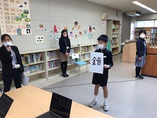 最後に、書き初め大会入賞者・5年生の消費者教育・町英語スピーチコンテストの3つの表彰を行い、紹介しました。英語スピーチコンテストの動画では、どの教室の子ども達も、受賞者の素晴らしいスピーチをじっくりと聞いていました。受賞者たちも、リモート会場で嬉しそうに見ていました。