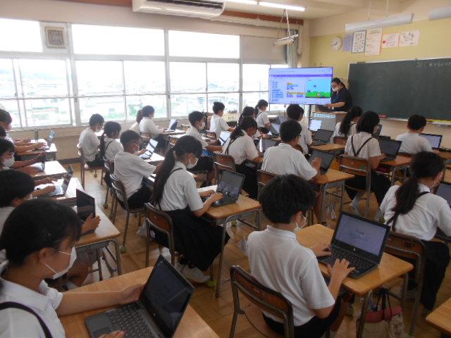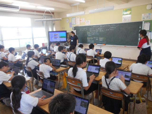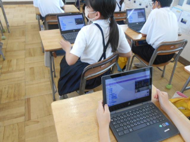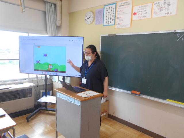 5・6年生は、情報教育の講師の方から、虫からにげろゲームを作ることを通して、
