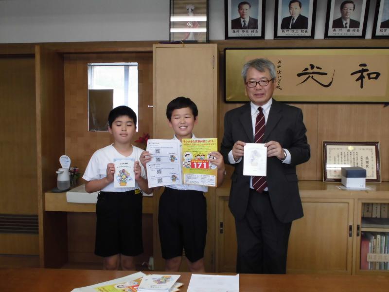 今日は、日本公衆電話会の方から、4年生に「こども手帳」を寄贈していただきました。