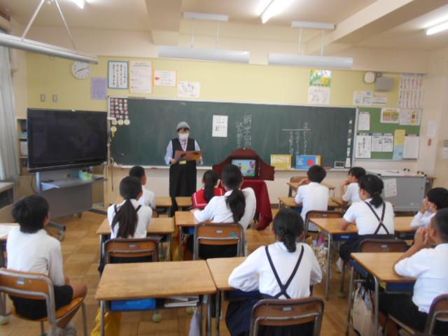 今日の朝は、図書ボランティアの方々による読み聞かせの時間でした。
