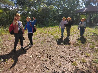 爽やかな秋晴れの中、5年生がキゴ山で体験学習1日目の活動に取り組みました。
